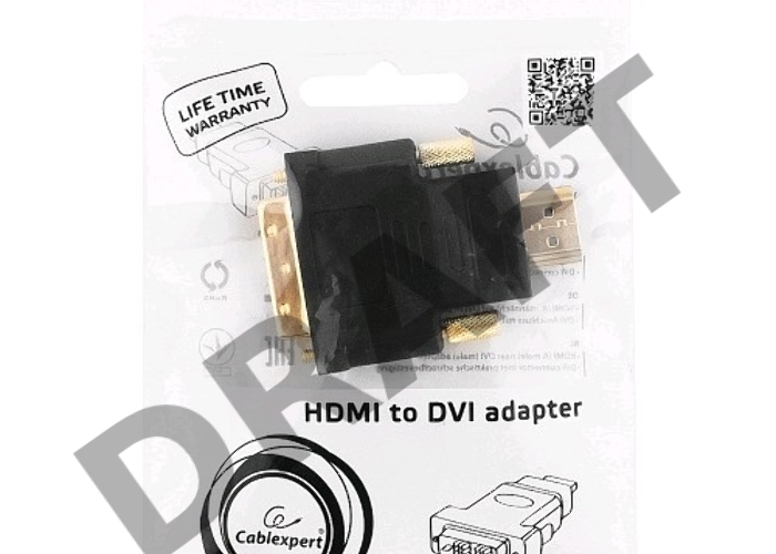 Переходник Gembird/Cablexpert Переходник HDMI-DVI 19M/19M(папа-папа), золотые разъемы A-HDMI-DVI-1