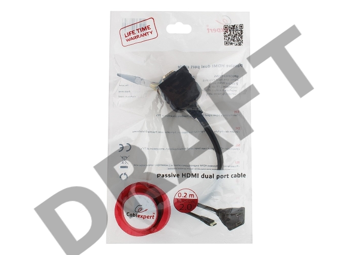 Разветвитель HDMI Cablexpert DSP-2PH4-002, HD19F/2x19F, 1 компьютер => 2 монитора, пасcивный, Full-HD, 3D, 1.4v