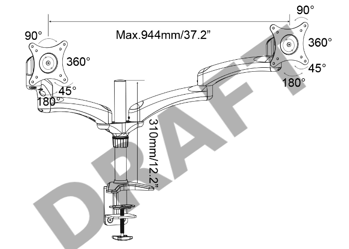 Кронштейн для мониторов Cactus CS-VM-FE124D-AL серебристый 15"-27" макс.8кг настольный поворот и наклон
