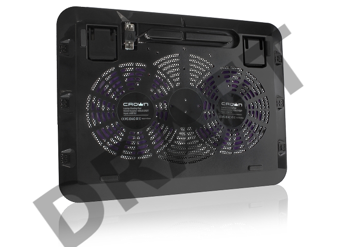 Подставка для ноутбука CROWN CMLC-202T black (для ноутбуков до 17" Размер: 365*70*19мм;Размер вентилятора: 140мм *2шт.LED подсветка; USB)