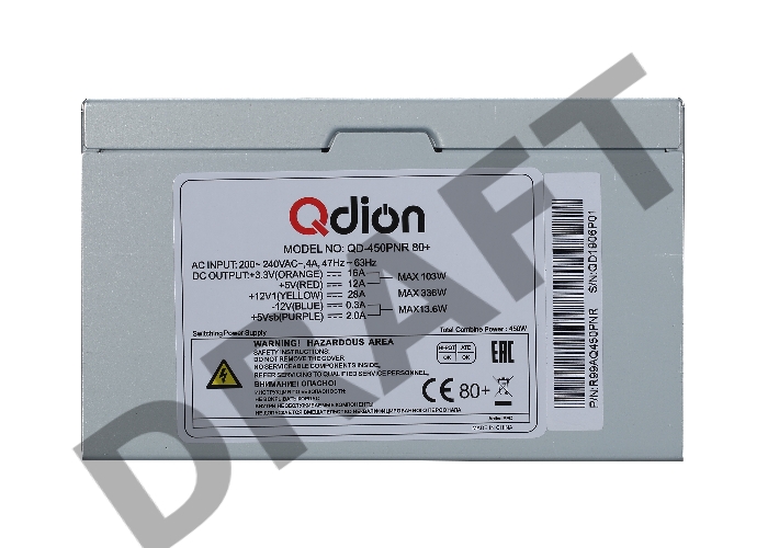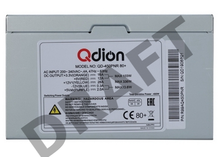 Блок питания 450Вт Power Supply FSP QDION ATX 450W, 120mm, 5xSATA, 1xPCI-E, APFC, 80+