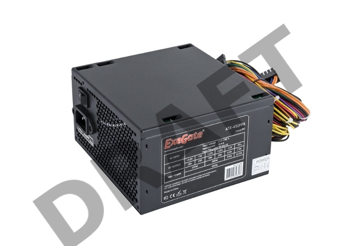 Блок питания 450W Exegate 450PPX RTL, ATX, black, active PFC, 12cm, 20+4pin/4pin/PCI-E/4*IDE/5*SATA