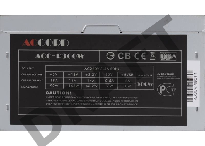 Блок питания Accord ATX 300W ACC-P300W (24+4pin) 80mm fan 3xSATA