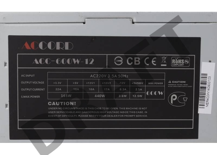 Блок питания Accord ATX 600W ACC-600W-12 (24+4+4pin) 120mm fan 4xSATA