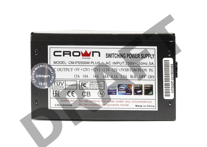 Блок питания CROWN CM-PS500W PLUS (ATX 500W, EMI/CE, 20+4in 450mm, 120mm red FAN, SATA*4, IDE*4, FDD*1, 4+4pin, 6+2pin PCI-E*1, кабель питания 1.2м, слюда)
