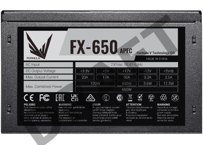 Блок питания Formula ATX 650W FX-650 (24+4+4pin) APFC 120mm fan 5xSATA RTL