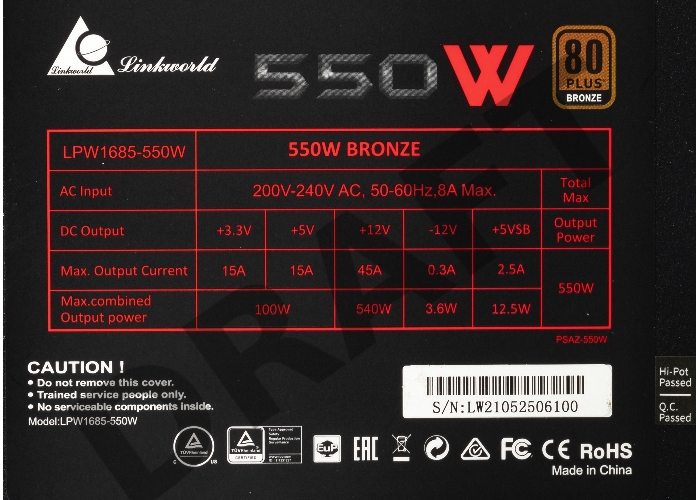Блок питания LinkWorld ATX 550W LW-550B 80+ (24+8+4+4pin) APFC 120mm fan 12xSATA RTL