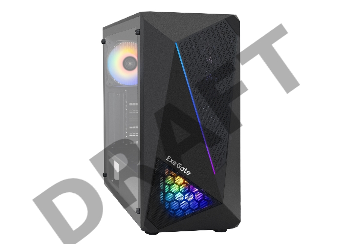 Корпус Miditower ExeGate EVO-8225-NPX600 (ATX, БП 600NPX с вент. 12см, 2*USB+1*USB3.0, черный, 2 вент. с RGB подсветкой и полоса на передней панели, боковая панель - закаленное стекло)