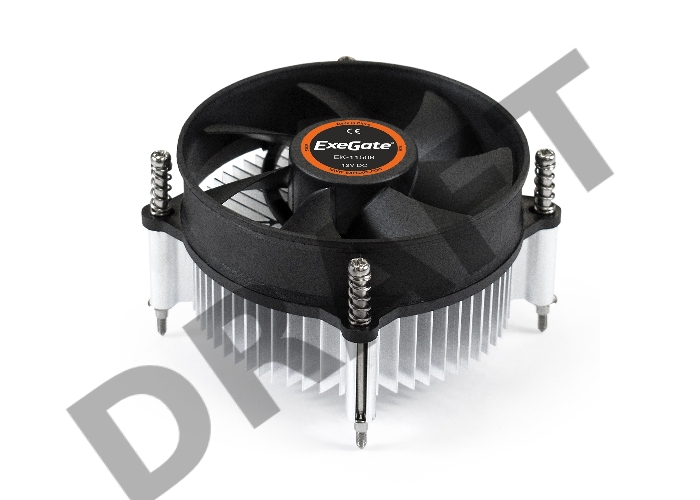 Кулер ExeGate EX286138RUS EK-11508 (Al, LGA1150/1151/1155/1156/1200, TDP 75W, 90mm, 2200RPM, Hydro bearing, 3pin, 22db, 285г, с термопастой, Retail)