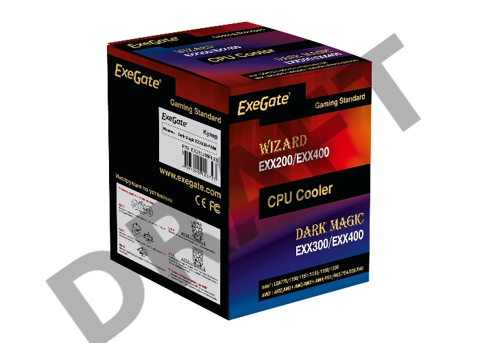 Кулер ExeGate EX286299RUS Dark Magic EXX400B-PWM (Al+Copper, черное покрытие, 4 тепл.трубки, LGA775/1150/1151/1155/1156/1200/AM2/AM2+/AM3/AM3+/AM4/FM1/FM2/754/939/940, TDP 140W, Fan 120mm, PWM, 1200-2100RPM, Hydro bearing, 4pin, 11-24db, 595г, с термопаст