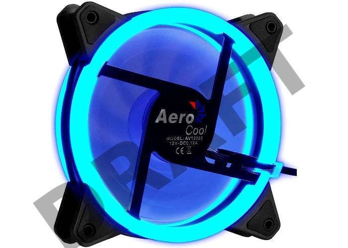Вентилятор Aerocool REV Blue , 120x120x25мм, цвет светодиодов : синий, подсветка в виде двойного кольца, 3+4-Pin, 1200 об/мин, 41,3 CFM, 15,1 дБА
