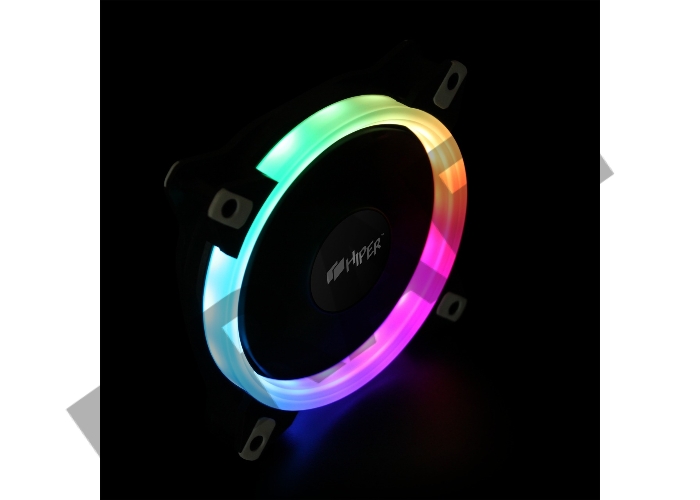 Вентилятор для корпуса Single ring, RGB fan HIPER HCF1251-03, 120*120*25mm (38.5CFM, 1200RPM, 3+4PIN)