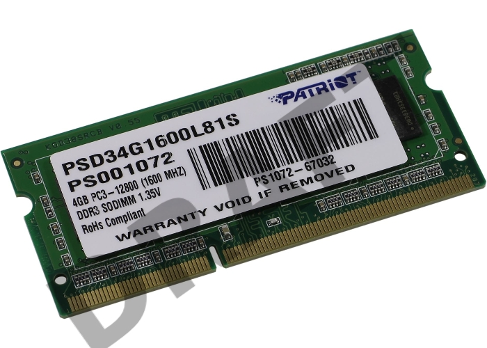Модуль памяти Patriot SO-DIMM DDR3 4GB PSD34G1600L81S (PC3-12800, 1600MHz, 1.35V)