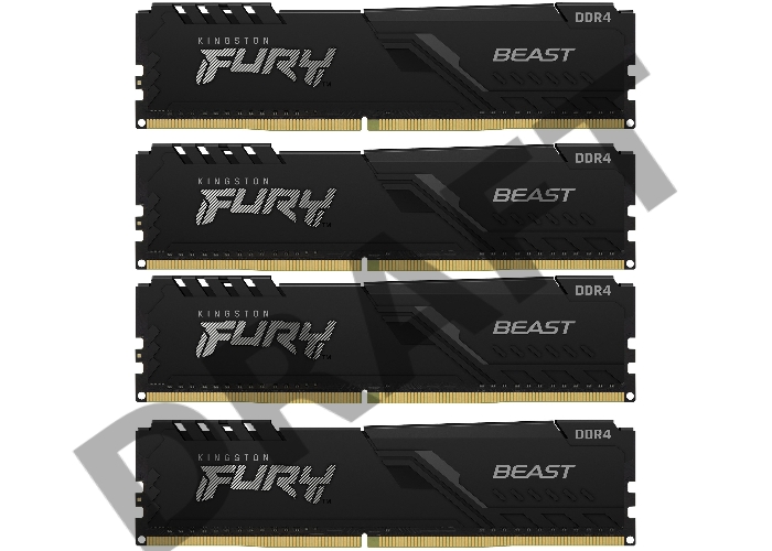 Память оперативная Kingston 64GB 2666MHz DDR4 CL16 DIMM (Kit of 4) 1Gx8 FURY Beast Black