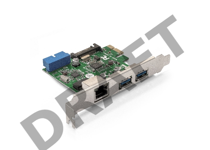 Контроллер ExeGate EX290278RUS EXE-362 PCI-E 2.0, 2*USB3.0 ext + 1*USB3.0 int + LAN UTP 1000Mbps, разъем доп.питания (OEM)