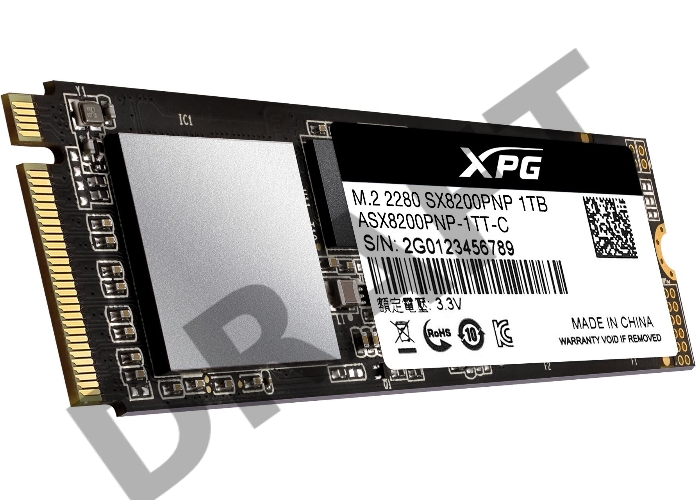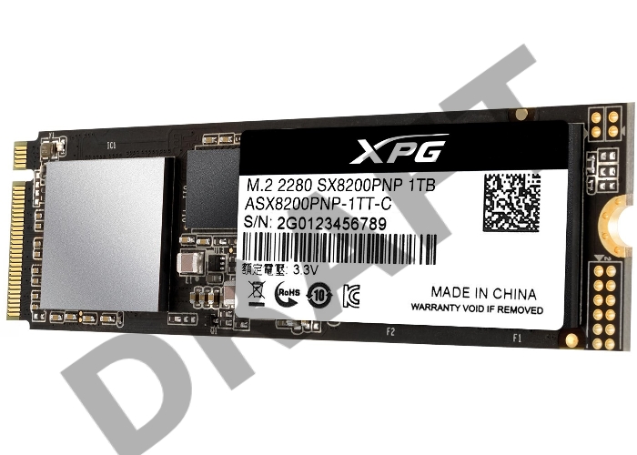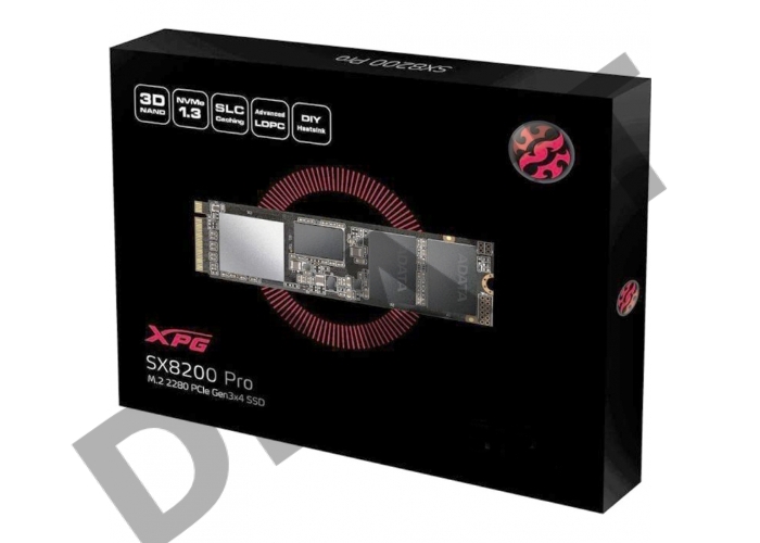 Накопитель SSD M.2 ADATA 1.0Tb SX8200 Pro (PCI-E 3.0 x4, up to 3500/3000Mbs, 3D TLC, NVMe, 22x80mm)