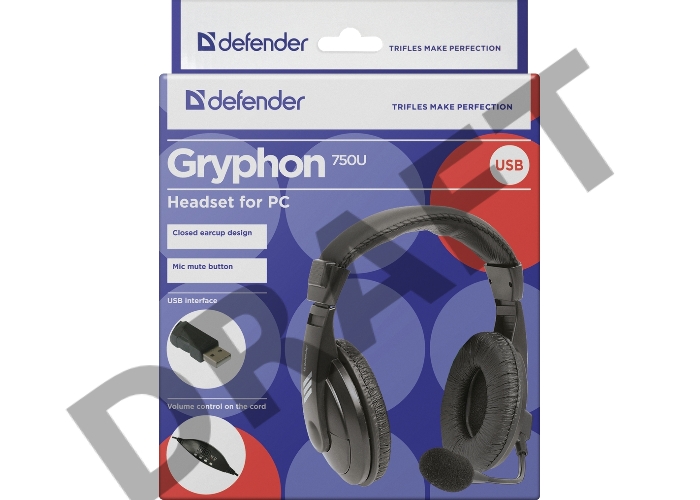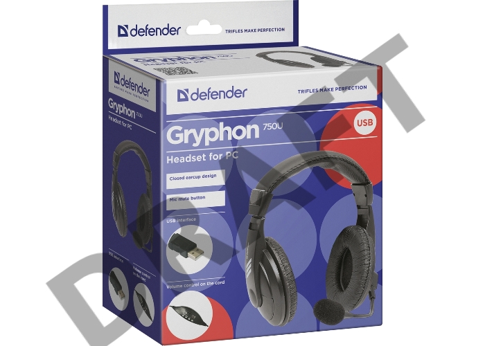 Гарнитура Defender Gryphon 750U USB, черный, 1.8м кабель 63752