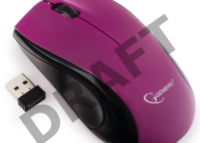 Мышь беспроводная Gembird MUSW-320-P, 2.4ГГц, фиолетовый, 2 кнопки+колесо-кнопка, 1000 DPI, батарейки в комплекте, блистер