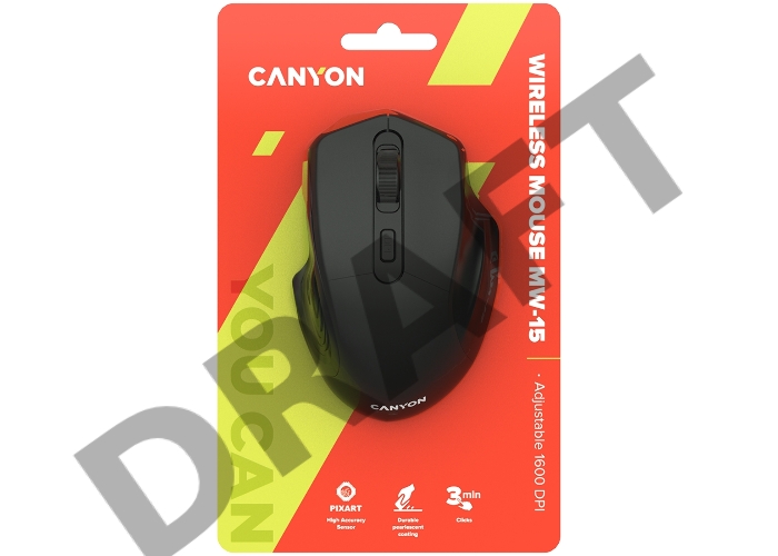 Мышь CANYON 2.4GHz Wireless Optical Mouse with 4 buttons, DPI 800/1200/1600, Black, 115*77*38mm, 0.064kg