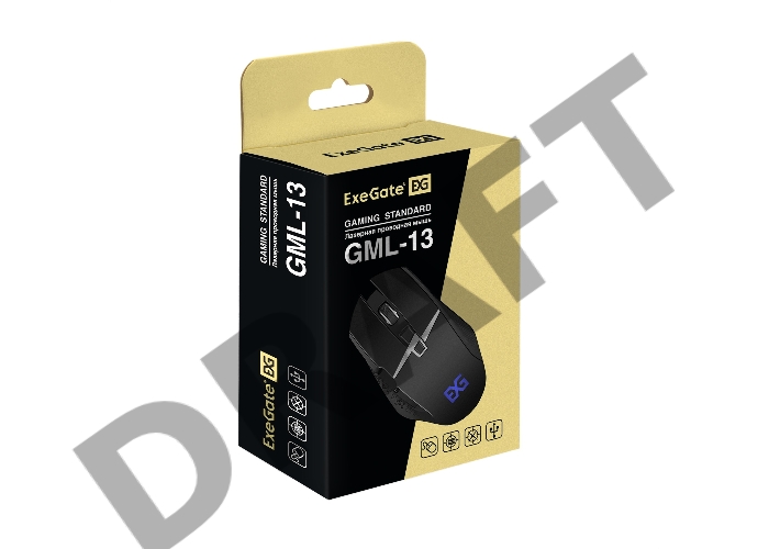 Мышь ExeGate EX289489RUS Gaming Standard Laser GML-13 (USB, лазерная, 1000/1200/3000/4000 dpi, 8 кнопок и колесо прокрутки, длина кабеля 1,5м, черная, Color box)