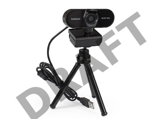 Веб-камера ExeGate EX287379RUS Stream C925 FullHD T-Tripod (матрица 1/3" 2 Мп, 1920х1080, 1080P, 30fps, 4-линзовый объектив, шторка, фиксированный фокус, USB, микрофон с шумоподавлением, поворотное крепление, телескопический штатив Tripod Tele Ball, кабел