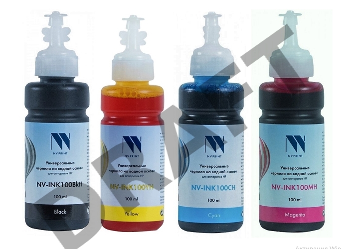 Чернила NV PRINT универсальные на водной основе для аппаратов HP, комплект 4 цвета по 100 мл