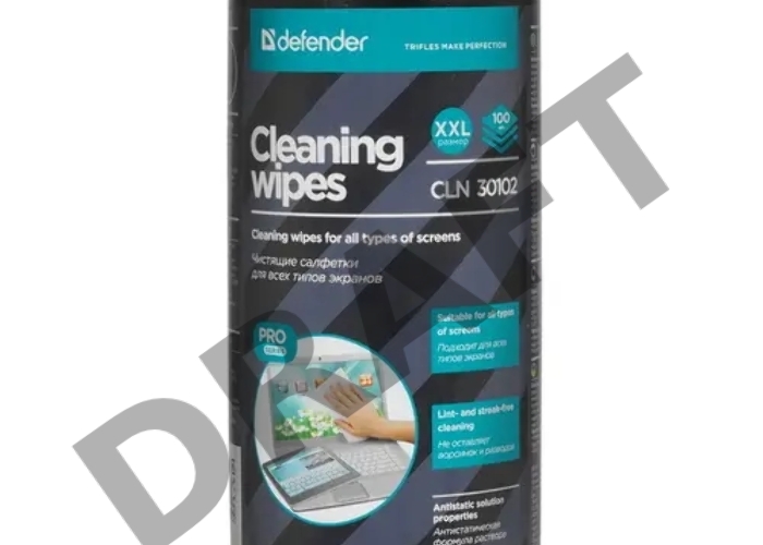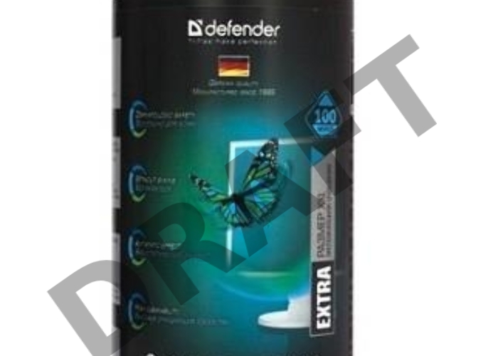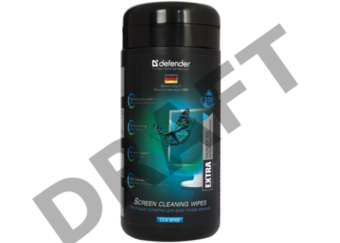 Чистящие салфетки Defender для экранов TV, ЖК-мониторов, дисплеев ноутбуков/ нетканый материал/ туба/ 100 шт/ Германия.