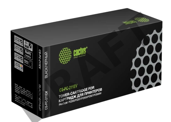 Картридж лазерный Cactus CS-PC-211EV PC-211EV черный (1600стр.) для Pantum P2200/P2207/P2500/P2507/P2500W/M6500/M6550/M6607
