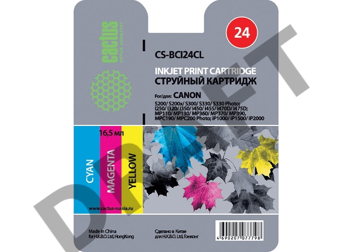 Картридж струйный Cactus CS-BCI24CL цветной для Canon S200/ S200x/ S300/ S330/ S330 Photo (12,6ml)