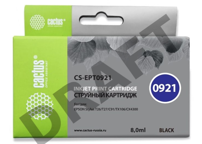 Картридж струйный Cactus CS-EPT0921 черный для Epson Stylus C91/ CX4300/ T26/ T27/ TX106 (8ml)