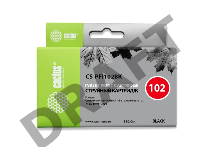 Картридж струйный Cactus CS-PFI102BK черный (130мл) для Canon iPF500/iPF600/iPF700/ MFP M40/iPF765/LP17/LP24