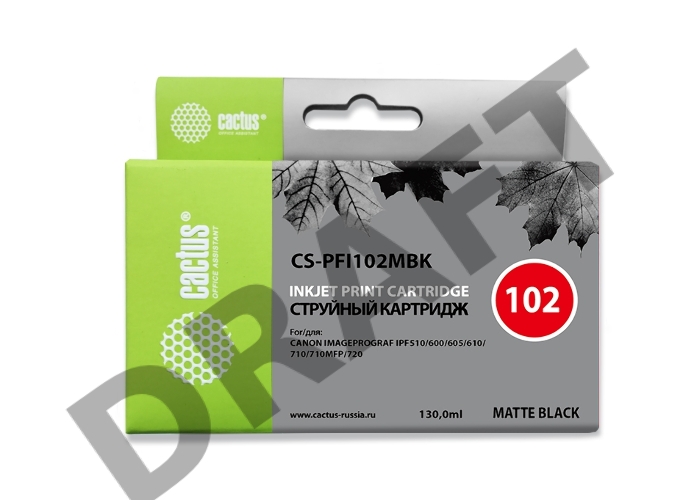 Картридж струйный Cactus CS-PFI102MBK черный матовый (130мл) для Canon iPF500/iPF600/iPF700/ MFP M40/iPF765/LP17/LP24
