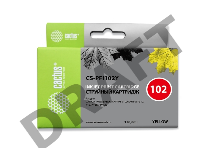 Картридж струйный Cactus CS-PFI102Y желтый (130мл) для Canon IP iPF500/iPF600/iPF700/MFP M40/iPF765/LP17/LP24
