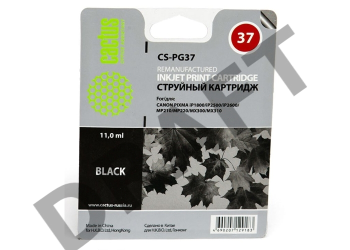 Картридж струйный Cactus CS-PG37 черный для Canon Pixma iP1800/iP2500/iP2600 (9ml)