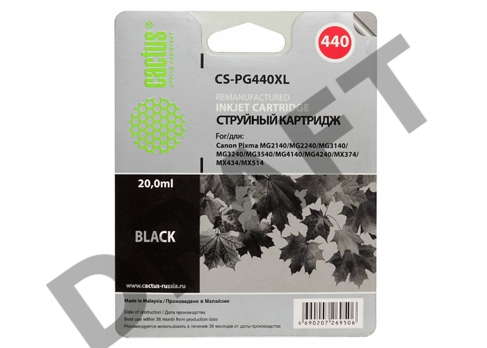 Картридж струйный Cactus CS-PG440XL черный для Canon Pixma MG2140/MG3140 (600стр.)