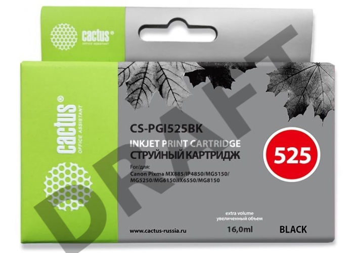 Картридж струйный Cactus CS-PGI525BK черный для Canon Pixma iP4850/MG5250/MG5150/iX6550 (16ml)