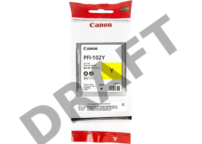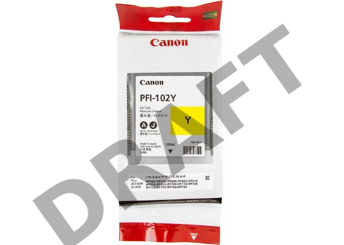 Картридж струйный Canon PFI-102Y (0898B001) желтый, 130 мл., для imagePROGRAF iPF605, iPF610., iPF650, iPF655, iPF710, iPF750, iPF755, LP17, iPF510