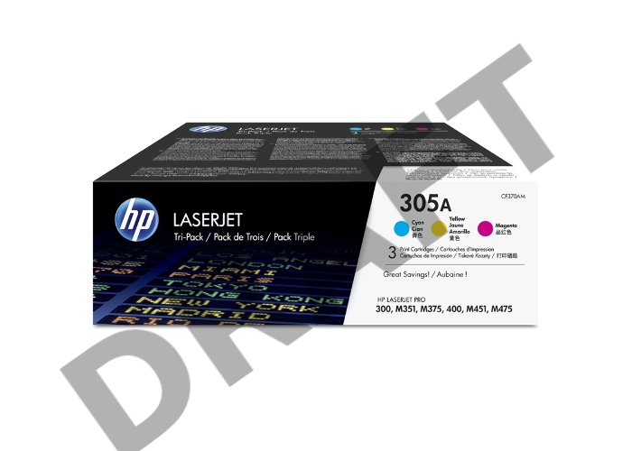 Тонер-картридж набор HP CF370AM № 305A голубой/пурпурный/желтый CLJ M451 (CE411A+CE412A+CE413A)