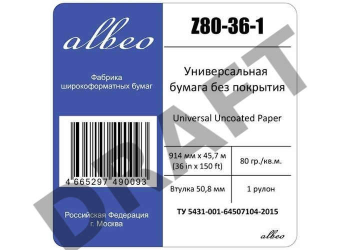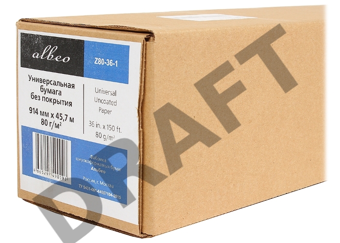 Бумага Albeo InkJet Paper, для плоттеров, универсальная, в рулонах, втулка 50,8 мм, белизна 146%, ширина рулона/длина/плотность (0,914х45,7 м., 80 г/к