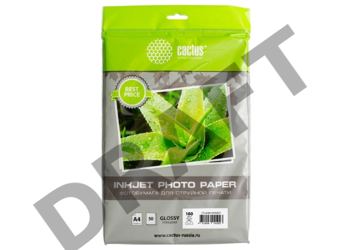 Фотобумага Cactus CS-GA418050ED A4/180г/м2/50л./белый глянцевое для струйной печати
