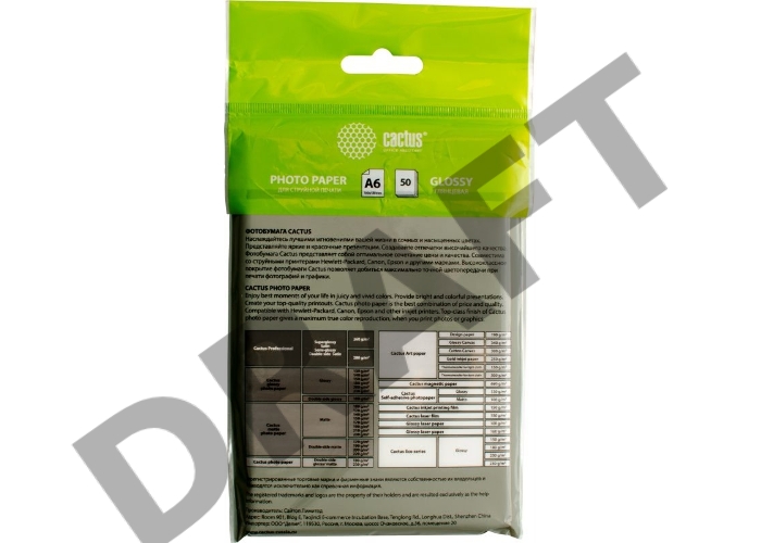 Фотобумага Cactus CS-GA618050ED A6/180г/м2/50л./белый глянцевое для струйной печати