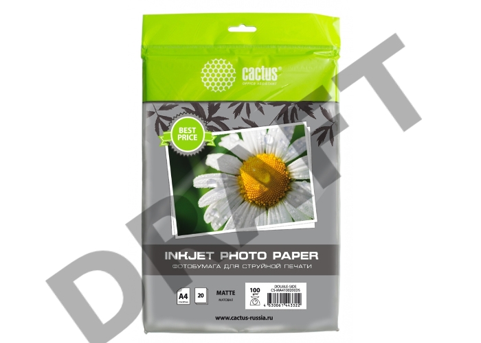 Фотобумага Cactus CS-MA410020EDS A4/100г/м2/20л./белый матовое/матовое для струйной печати