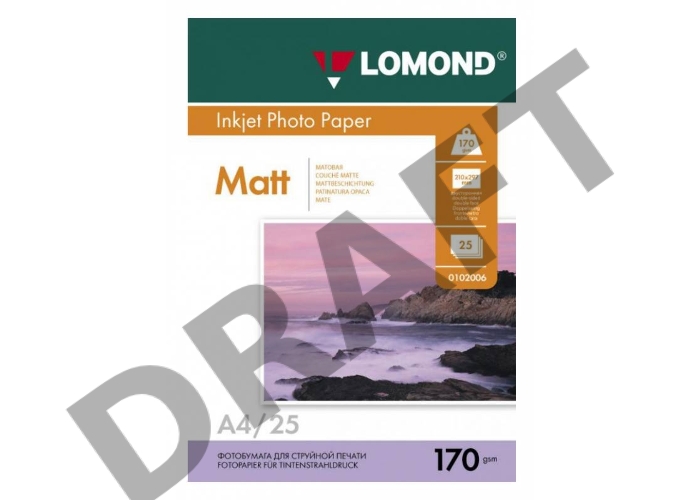 Фотобумага Lomond 0102032 A4/170г/м2/25л./белый матовое/матовое для струйной печати
