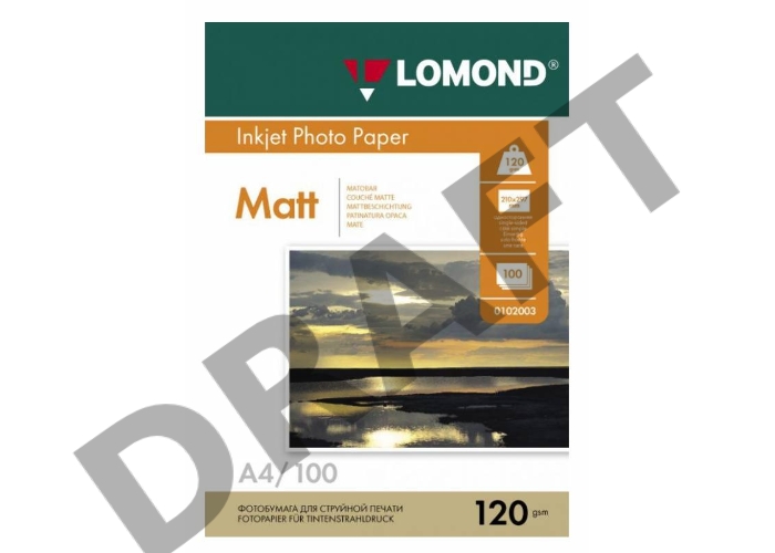 Фотобумага LOMOND Односторонняя Матовая A4/120/100л.