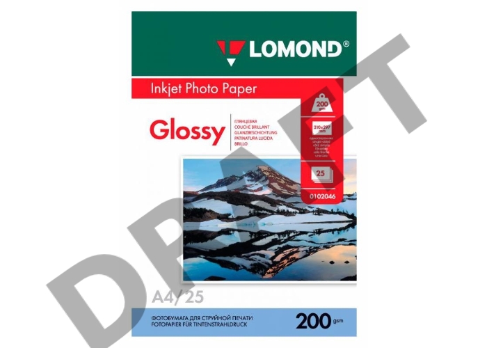 Фотобумага LOMOND Одностороняя Глянцевая, 200г/м2,A4 (21X29,7)/25л. для струйной печати
