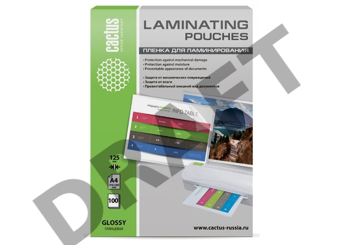 Пленка для ламинирования Cactus 125мкм A4 (100шт) глянцевая 216x303мм CS-LPGA4125100