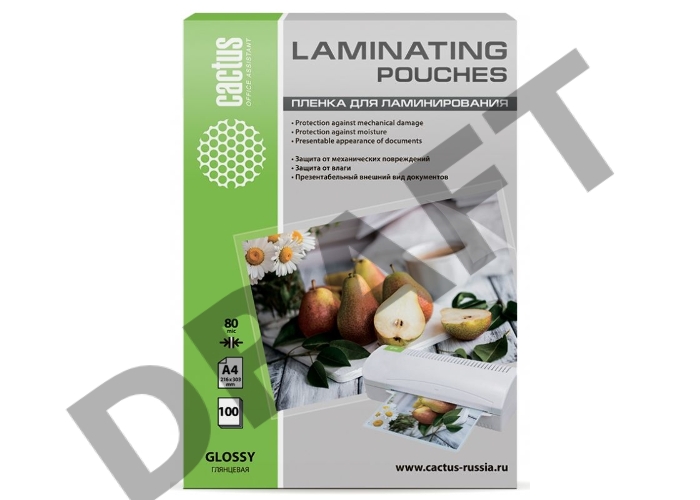 Пленка для ламинирования Cactus 80мкм A4 (100шт) глянцевая 216x303мм CS-LPGA480100