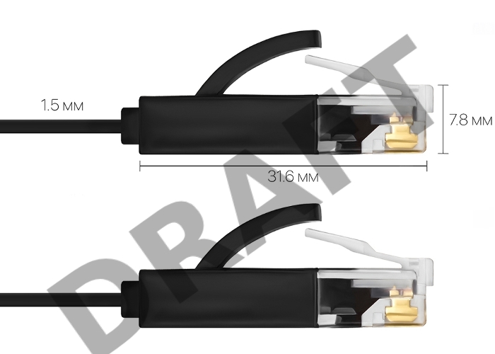 Патч-корд Greenconnect плоский прямой PROF 5.0m UTP медь, кат.6, черный, позолоченные контакты, 30 AWG, Premium ethernet high speed 10 Гбит/с, RJ45, T568B (GCR-LNC616-5.0m)