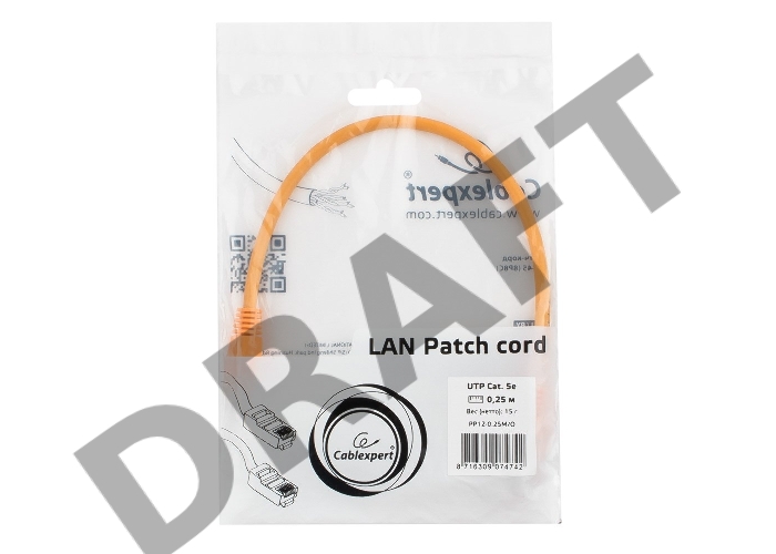 Патч-корд UTP Cablexpert кат.5e, 0.25м, литой, многожильный (оранжевый)