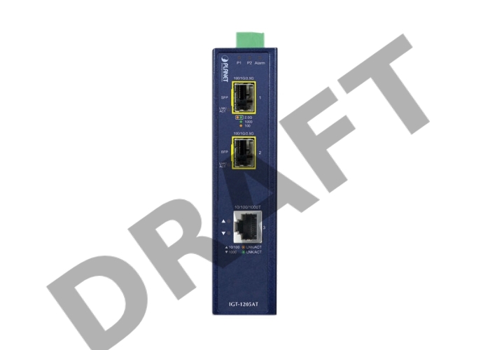 индустриальный медиа конвертер IGT-1205AT IP30 Industrial 10/100/1000T to 2-Port 100/1000X SFP Gigabit Media Converter (-40 to 75 degree C)